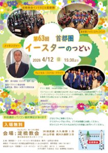どなたでもご来場ください。クリスチャンでない方も、どうぞお気軽にお越しください。ぜひイエス・キリストのよみがえりの祝福にあずかってください。 4月12日(日) 15:30 淀橋教会第63回首都圏イースターのつどい講師:高 […]